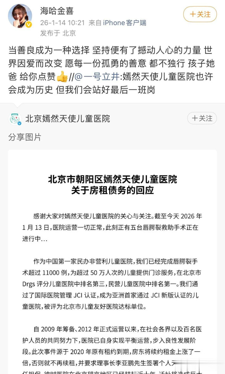 就在大家把目光聚焦在李亚鹏身上时,他前妻海哈金喜的一个小动作,却被不少人留意到了,她默默转发了李亚鹏的相关动态,还配上了一段挺走心的文字,大意是,当善良成为坚持,就有了撼动人心的力量,世界会因为爱而改变,文末不仅加了爱心,更直接用孩子她爸称呼李亚鹏,一句为你点赞,显得大气又平和,看来两人虽然分开,关系倒挺融洽,亲情依然在。