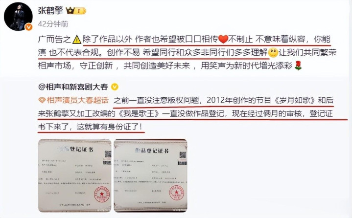 1月17日,德云社张鹤擎发布了一段视频,感谢张艺兴的点评和关注。