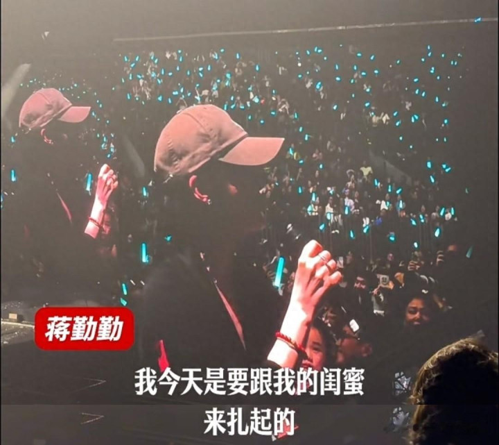 在场粉丝镜头下,当晚的两人都穿着皮外套,戴着帽子,蒋勤勤是有化妆,戴着耳钻,一看就是有精心打扮过的。