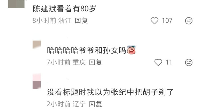 虽说80岁是有些夸张了,不过陈建斌这次真是被这一嘴的胡子拉高了年龄感,上个月没胡子时候还是挺年轻的,与老婆在一起年龄差感觉没有那么大,还是挺般配。