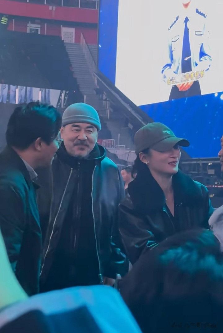 相比之下陈建斌就有点粗糙了,胡子拉碴,私底下夫妻俩都特别的随和,与身旁的人聊的火热。
