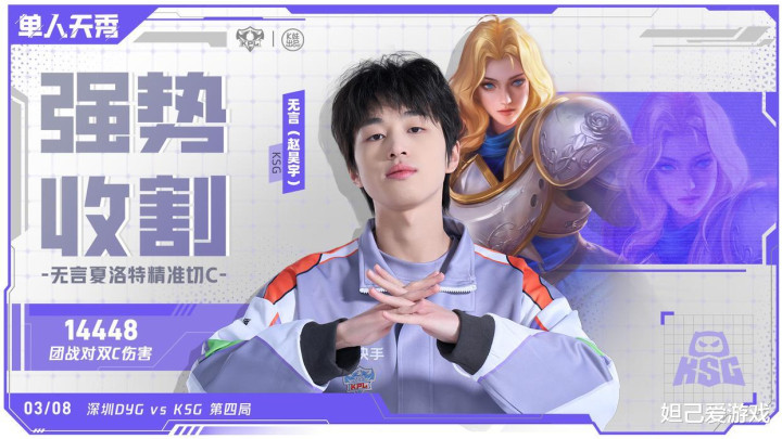 在电竞赛场中,选手越年青,常常手法越强,咱们将其称之为“芳华风暴”,照旧的“风箫、钟意、决意”等选手在赛场上打出了可以的成果,而当技艺来到本赛季,KSG的顽抗路无语、发育路小屿等选手的施展齐很可以,两名选手均凭借出色的局内数据拿到对应分路周最好。