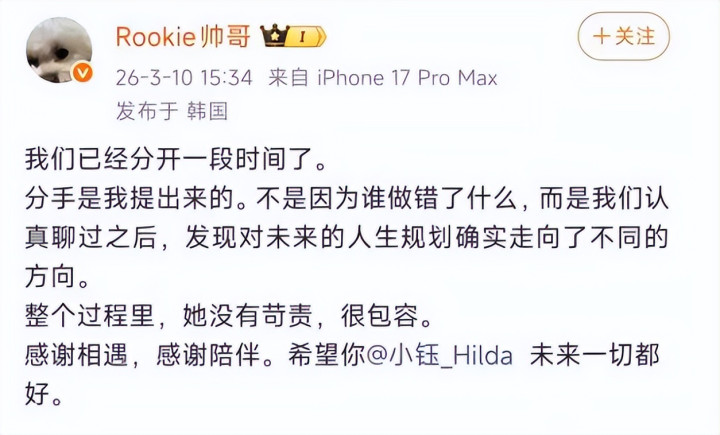 一、官宣原文曝光!ROOKIE主动提仳离,原因令东谈主愁然