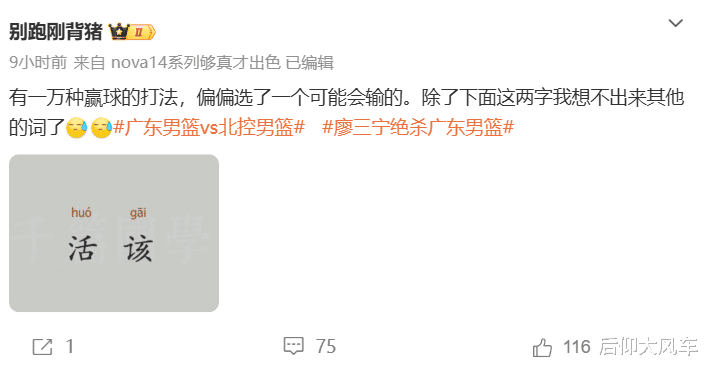媒体人“别跑刚背猪”直接怒批杜锋:有一万种赢球的打法,偏偏选了一个可能会输的。除了下面这两字(活该)我想不出来其他的词了。