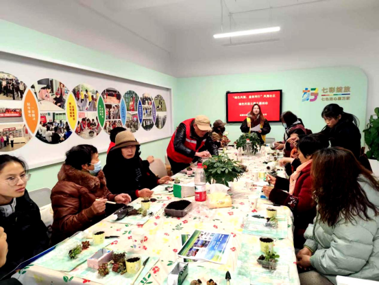 活动最后,大家一同将完成的盆栽搬运至社区公共区域,携手布置“绿色角落”。一盆盆绿意盎然的作品整齐摆放,为社区注入清新活力,也让“资源再生”的理念化为眼前可见的风景。