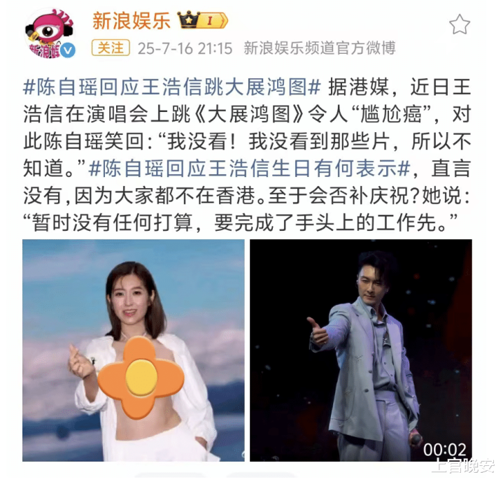 就是陈自瑶的这个表情将二人离婚的传闻推向了高潮,再加上之后王浩信北上发展,常年聚少离多,离婚传闻越传越真,愈演愈烈。