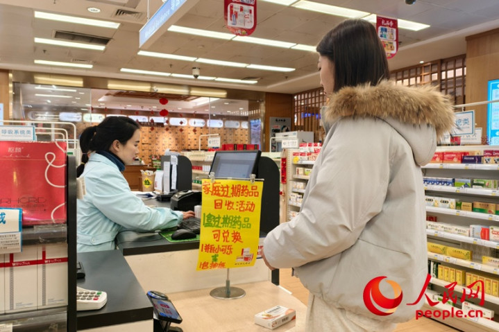 1月6日,位于成都春熙路的一家药店,市民携带家庭过期药品参与回收。人民网赵祖乐摄